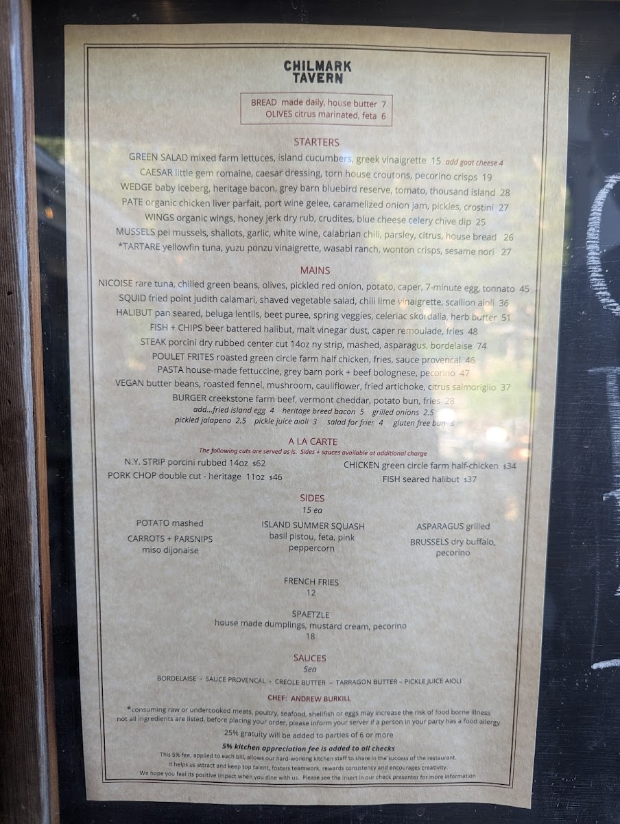 With a BYOB policy and a commitment to accommodating dietary needs, Chilmark Tavern invites you to experience the perfect evening of comfort food in a cozy setting. Culinary excellence awaits!